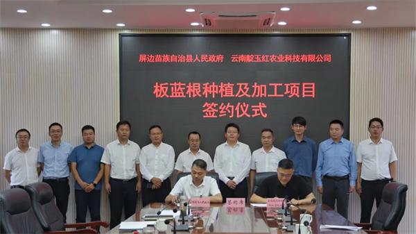 云南靛玉红农业科技公司董事长高晖在签约后表示:“屏边得天独厚的自然环境和丰富的林下资源,为孕育高品质、道地板蓝根提供了优越条件,公司将严格履行协议承诺,高标准、高质量完成板蓝根种苗基地、加工厂的建设与运营,落实保底价收购县域板蓝根鲜枝叶;引进先进种植技术和精深加工工艺,促进板蓝根全产业链发展。”