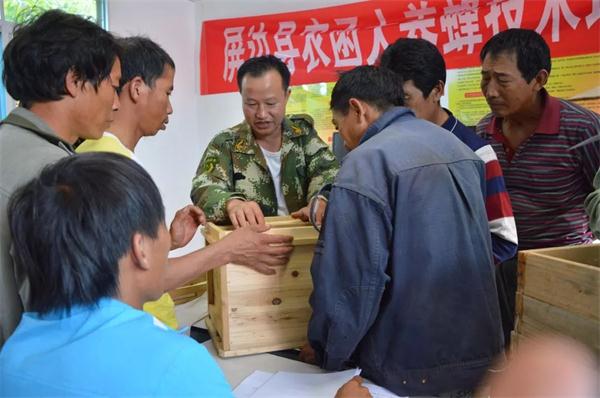 白沙村委会是屏边县科协定点扶贫单位,全村辖17个自然村19个村民小组,有建档立卡贫困户203户811人,目前还有未脱贫群众86户329人,贫困发生率16.85%。如何让贫困群众快速增加收入,实现脱贫目标,县科协在调研中看到,该村山清水秀,四季花开,非常适合养殖中华蜜蜂,且每村皆有少量群众养殖野生蜜蜂,养蜂是该村一个短平快的好项目。在经过充分准备之后,县科协暨农函大屏边分校聘请有10余年养蜂经验的老师帮助该村培训养蜂技术。培训采用播放电教片、现场教学、理论讲解、知识问答的方式,重点对蜂箱改造、蜂箱使用、中华蜜蜂生活习性、优良中蜂蜂王培育技术、中华蜜蜂活框饲养技术规范等方面知识进行了详细讲解。