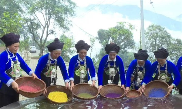 节日的早晨,壮族妇女们开始染花米、淘花米、蒸花米,男人们则杀鸡、宰鸭、煮老猪脚……家家户户忙碌不已。