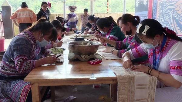 苗族蜡染是一种古老的坊染工艺,为了让更多人掌握这一传统技艺,屏边县在白云乡太平村委会太平绣坊开展了苗绣蜡染培训。