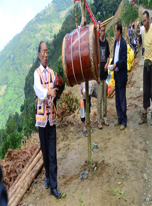 “祭鼓”是一项颇具韵味的民族文化活动。9月2日,屏边县湾塘乡阿卡村委会丫口寨村迎来一次祭鼓活动。所谓“祭鼓”,就是挑选良辰吉日,让新鼓替换旧鼓的过程。祭鼓人必须是当地德高望重的长者,祭鼓活动开始后,祭鼓人要演唱新鼓替换旧鼓的祭词,首先感谢旧鼓所付出的辛劳!再告知新鼓今后将要承担的职责任务等。本次祭鼓活动特别邀请了我县国家级非遗传承人候保兵作为祭鼓人。