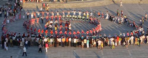 舞蹈一经推出,即受到人们的特别衷爱。每当广场上《同乐颂》的音乐响起,人们便穿上绚丽多彩的苗族服饰,三五成群地从四面八方赶来,随着节拍跳起来舞起来。数百人手拉手,欢快地跳着、旋转着,场面十分壮观,深受感染的观众也不由自主地加入其中,在优美的神韵中,尽情体验别具一格的苗族风情和古老民族的文化奥秘。