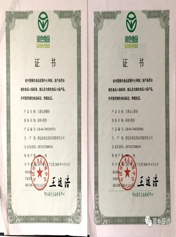 屏边的古茶树主要分布在玉屏、新现、和平、新华四个乡镇海拔1500-2200米的区域。除了历史孕育的古茶树,屏边县还依托得天独厚的地理气候条件,引进了云南大叶种、云抗10号和长叶白毫等品种进行种植。同时通过合作社,采取公司+农户+基地的运行模式,发展茶叶产业。目前有茶叶产业合作社1个,位于新现镇吉咪村大深沟绿宝茶业有限责任公司,公司先后取得了农业部无公害农产品认证、农产品产地认证,《绿色食品》认证证书,从打造世界一流“绿色食品牌”精准发力。