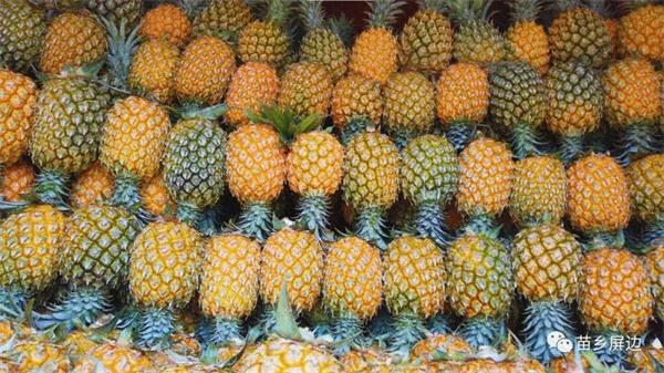 香水菠萝,果香四溢。漫山遍野的菠萝连成了一片“菠萝山”,一个个大小不一的菠萝从叶片中向着阳光生长,装点着热水村的绿水青山。