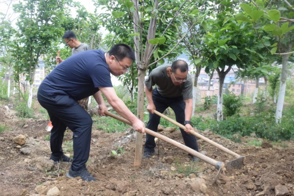 植树活动现场,大家热情高涨、干劲十足,充分发挥了“三农”干部特别能吃苦、特别能奉献的精神,呈现出一派热火朝天的劳动景象。大家分工协作、配合密切,铲土搬树、抡锄挖坑、手扶树苗、挥锹培土、提桶浇水……合力将一棵棵树苗“安家落户”,呈现出一派热火朝天的忙碌景象。一个小时不到,500余棵树苗全部栽植完毕,一排排新栽的玉兰树苗昂然挺立。