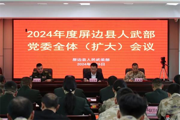 2月5日,屏边县人武部召开党委全体(扩大)会议,县委书记宋文辉参加会议,强调要深入贯彻习近平强军思想,锚定如期实现建军一百年奋斗目标,全面加强党的建设,全面加强练兵备战,全面加强军事治理,团结带领广大国动人稳中求进、干中求成,稳步提升人武部全面建设水平,使国防和后备力量建设事业阔步前行。