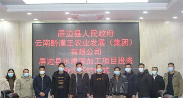 12月27日,屏边县人民政府与云南黔漠王农业发展(集团)有限公司达成合作协议,建设屏边县水果深加工项目。
