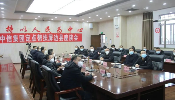 调研结束后,屏边县委、县政府主要领导和调研组一起与中信集团北京总部以视频会议形式进行座谈交流。县委书记宋文辉汇报了屏边县基本县情、巩固拓展脱贫攻坚成果及中信集团定点帮扶工作情况。