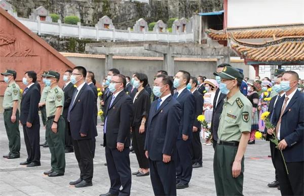 参加纪念活动的四套班子主要领导和各部队首长整理花篮缎带,向烈士纪念碑行注目礼,缓步绕行瞻仰革命烈士纪念碑,追思先烈们艰苦奋斗的革命历程。