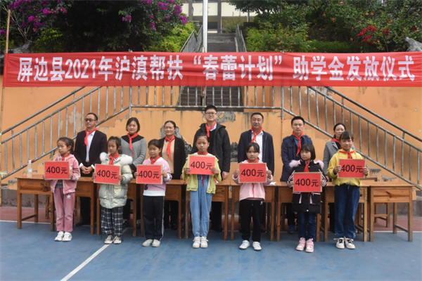 10月28日,屏边县2021年沪滇帮扶“春蕾计划”助学金发放仪式在玉屏镇新荣小学举行,县委常委、副县长张强,县妇联、县教育体育局等领导参加了发放仪式。