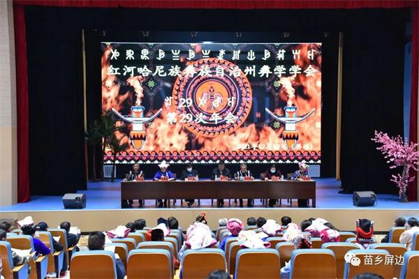 彝族舞蹈跳和谐,篝火腾越映苗城。12月10日,红河州彝学学会第29次年会在屏边召开。州彝学学会负责人、专家学者,县领导蒋国红、李付林、高芬、马丽琼及屏边彝族学会、苗族学会、壮族学会、山歌协会代表参加年会。