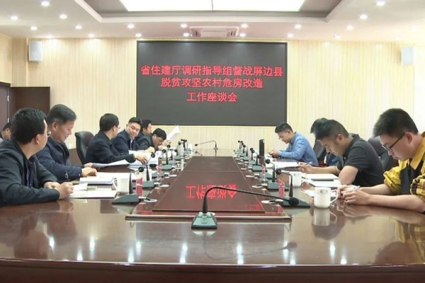近日,省住建厅副厅长蔡葵率调研指导组到屏边县督战农村危房改造工作,调研采取实地查看与开展座谈的方式进行。县委书记苏畅,县委副书记、县长李雄文,副县长汪晋云,县扶贫办、县住房和城乡建设局相关负责人参加座谈会。