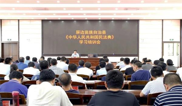 8月7日,屏边县召开《中华人民共和国民法典》学习培训会议。县四套班子领导成员,县法院院长、检察院检察长,县驻村工作队总队长、副总队长,县委和县级国家机关各部委办局、各人民团体、省州驻屏单位主要负责人,各乡镇党委书记、乡镇长等120余人参加培训。会议由县委常委、县委政法委书记李浩主持。