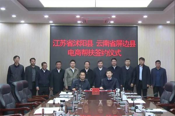 随后,屏边县副县长万执政与沭阳县副县长沈杰签订了电商帮扶协议。