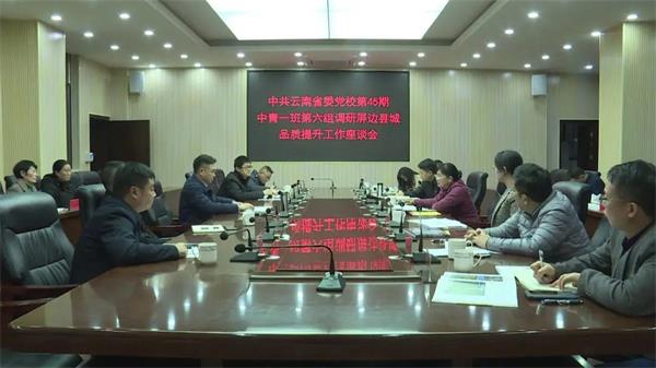 12月15日,中共云南省委党校第45期中青一班第六组到屏边县调研县城品质提升工作。县委副书记、县长李雄文,县委常委、副县长张强及相关单位负责人参加调研。