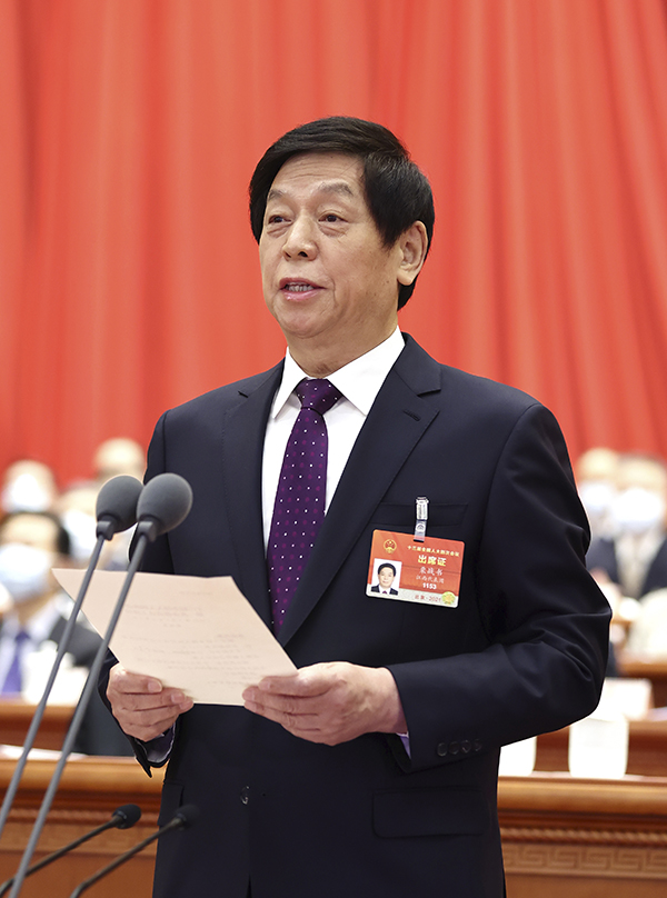 大会主席团常务主席、执行主席栗战书主持大会。新华社记者 鞠鹏 摄