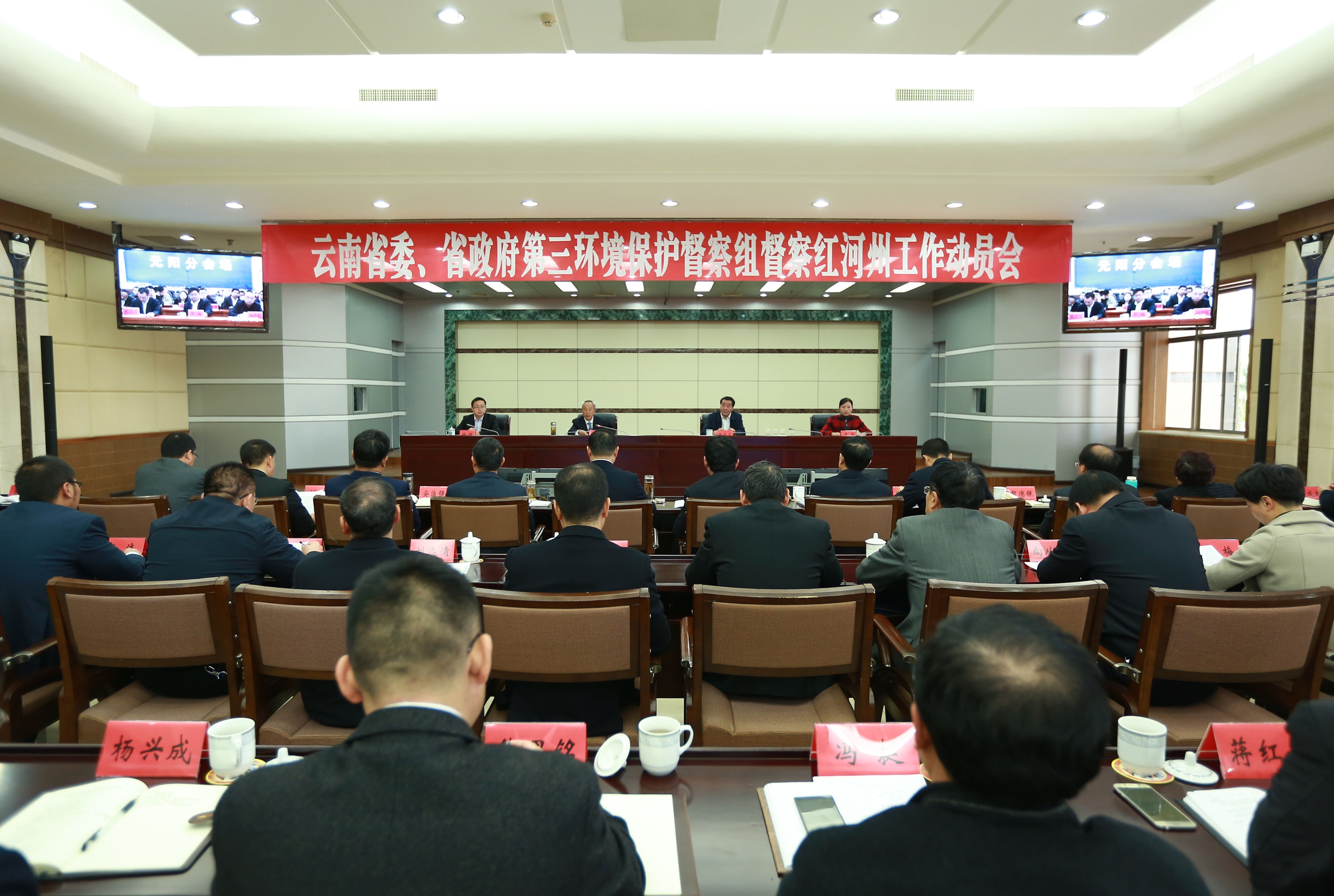 根据省委、省政府统一部署,云南省第三环境保护督察组于11月26日进驻红河州开展环境保护督察工作。11月27日,云南省第三环境保护督察组督察工作动员会在红河召开,督察组组长张登亮、副组长徐璇就做好督察工作分别作了讲话,红河州州委书记姚国华作了动员讲话。