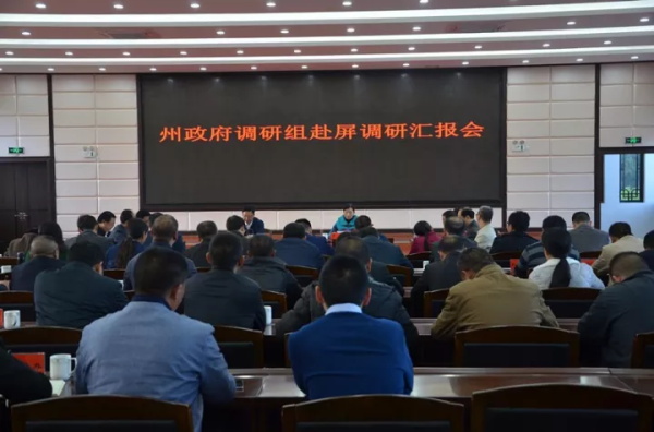 在下午举行的汇报会上,苏畅向调研组汇报了屏边2017年经济社会发展概况、2018年工作打算以及存在的困难问题;州发改、教育、财政、住建、交运、农业、统计部门主要负责人分别在会上作发言,对屏边各项工作提出了意见。