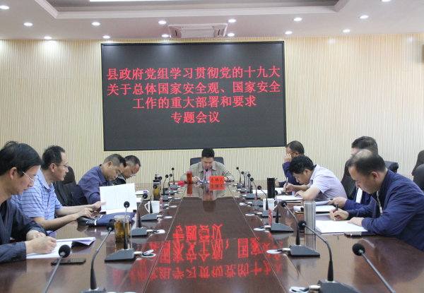 4月13日,县人民政府党组书记、县长李雄文主持召开县十六届人民政府党组会议,学习贯彻党的十九大关于总体国家安全观、国家安全工作的重大部署和要求。