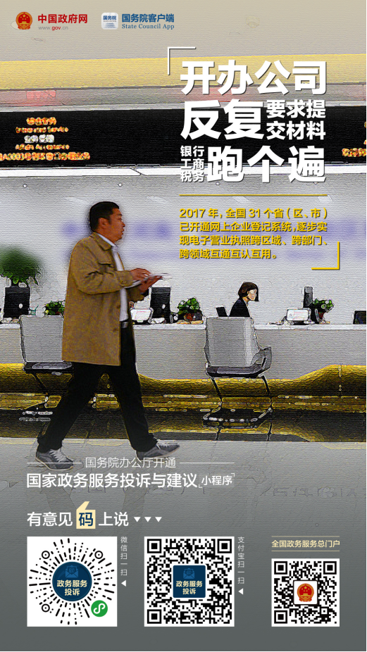 为贯彻落实李克强总理关于政务服务要接受各类问题投诉、加强监督的重要指示精神,9月20日起,国务院办公厅开通“国家政务服务投诉与建议”小程序,广泛接收社会各界对政务服务的问题线索和意见建议。