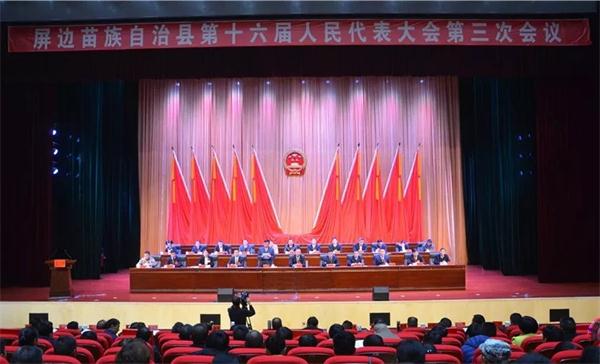 1月10日下午,屏边苗族自治县第十六届人民代表大会第三次会议在圆满完成各项议程后,在庄严的国歌声中胜利闭幕。本次会议应到代表154名,实到代表142名,符合法定人数。