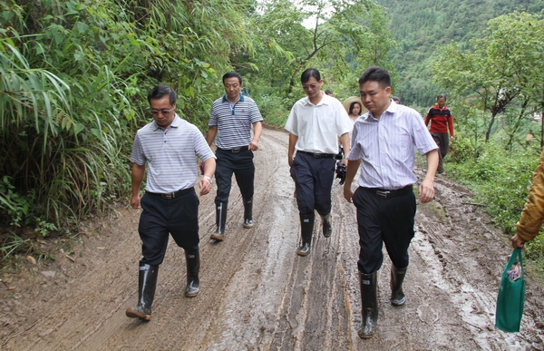 7月22日上午,县长李雄文率县委常委、县人民政府常务副县长刘红明、副县长许春平到蒙屏二级公路屏边县新现乡下那打邑路段新查看灾情。
