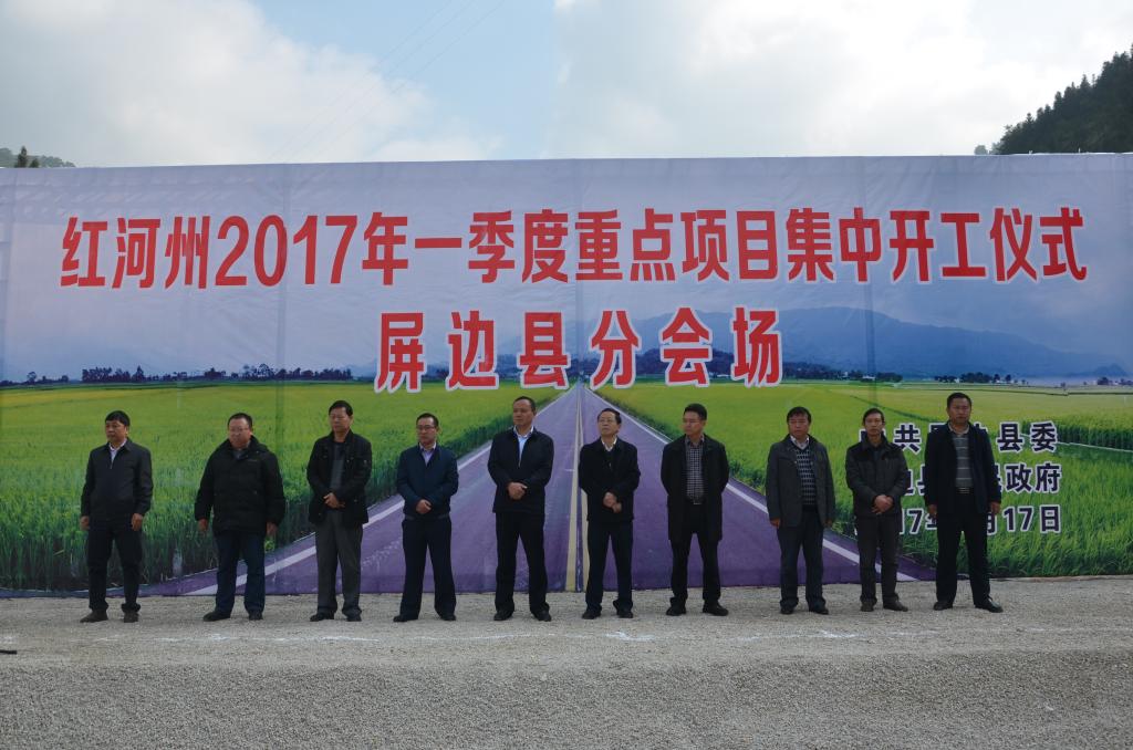 2月17日,屏边县2017年重点项目开工仪式在屏边火车站站前广场隆重举行。县领导苏畅、李雄文、木伟、杨文学、刘红明、熊玉书、田兴盛、汪晋云、杨国昌、吴红昌及有关部门负责人参加开工仪式。