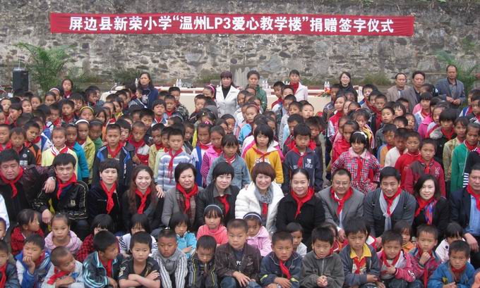 11月25日,温州LP3张伟峰等10位义工,专程从浙江温州赶到屏边县玉屏镇新荣小学,参加援建屏边新荣小学教学楼捐赠仪式。温州LP3代表吴峰雷与屏边县人民政府副县长吴显贵签订了捐赠20万元援助屏边新建新荣小学教学楼的捐款协议,红河州侨联主席周碧奋、副主席谭泓和屏边县有关领导出席了捐赠仪式。