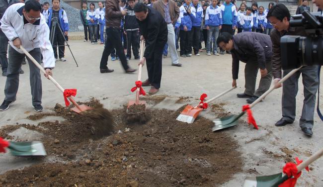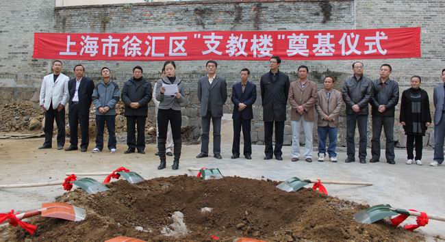 上海市徐汇区教育局赵副局长赵伟明、县人民政府副县长兰菊等有关领导参加“支教楼”开工仪式。[俞雪松 李建波]