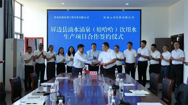 9月21日,红河哈尼族彝族自治州屏边苗族自治县滴水涌泉(娃哈哈)饮用水生产项目合作签约暨开工仪式在云南屏边产业园区举行。屏边艮源水利工程开发有限公司与红河云美饮料有限公司共同签署《屏边滴水涌泉(娃哈哈)饮用水生产项目建设合作框架协议》,标志着双方合作进入实质性阶段。该项目是屏边县推动产业升级、强化招商引资的重要成果,将进一步助力乡村振兴和地方就业,为当地经济社会高质量发展注入强劲动力。