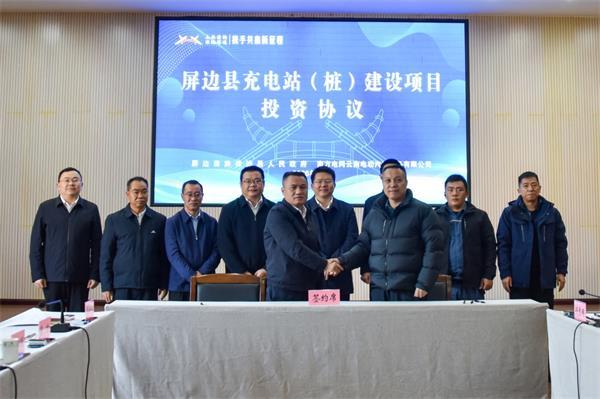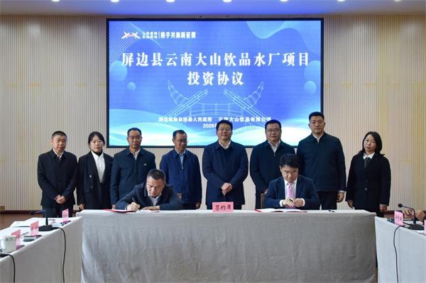 县委副书记、县长杨富丞与云投旅游、中椒农业(广东省)集团有限公司、南方电网云南电动汽车服务有限公司、云南大山饮品有限公司、云南苗苓中药材有限公司、云南九棵树农业有限公司、红河申桐林业发展有限公司、红河屏边天时农业科技发展有限公司分别签署合作协议。