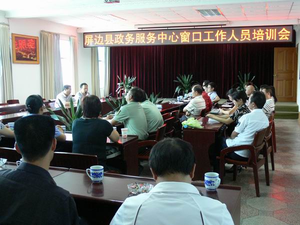 政务中心挂牌成立前,屏边县还对工作人员进行培训,县委常委、县人民政府常务副县长杨旺林做动员讲话,县人民政府办公室主任李申武就窗口工作人员的工作进行培训。