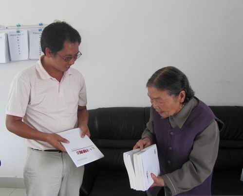 与李玉琴老人一同前来的王大妈说:“老人是重庆沙坪坝区新桥小学的一位退休教师,今年88岁,老伴和惟一的一个儿子已经去世,前年从重庆来到屏边与侄女一起生活。老人平时省吃俭用,但她在书报方面很舍得花钱,去年,为屏边一中、屏边高级中学各订了一份《人民日报》、《参考消息》、《解放军日报》,还给好几个单位订过书报。”