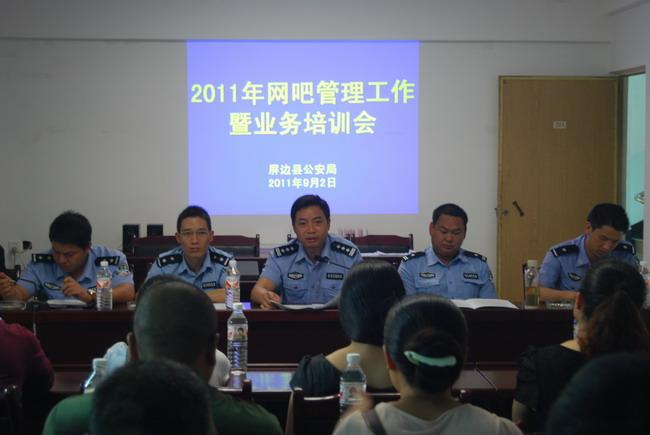 为进一步加强我县网吧管理,促进网吧管理制度化、规范化和长效化,杜绝网吧违规经营行为,提升网吧实名系统数据采集率、准确率,9月2日,屏边县公安局组织召开2011年网吧管理工作暨业务培训会,全县21家网吧业主参加了会议。
