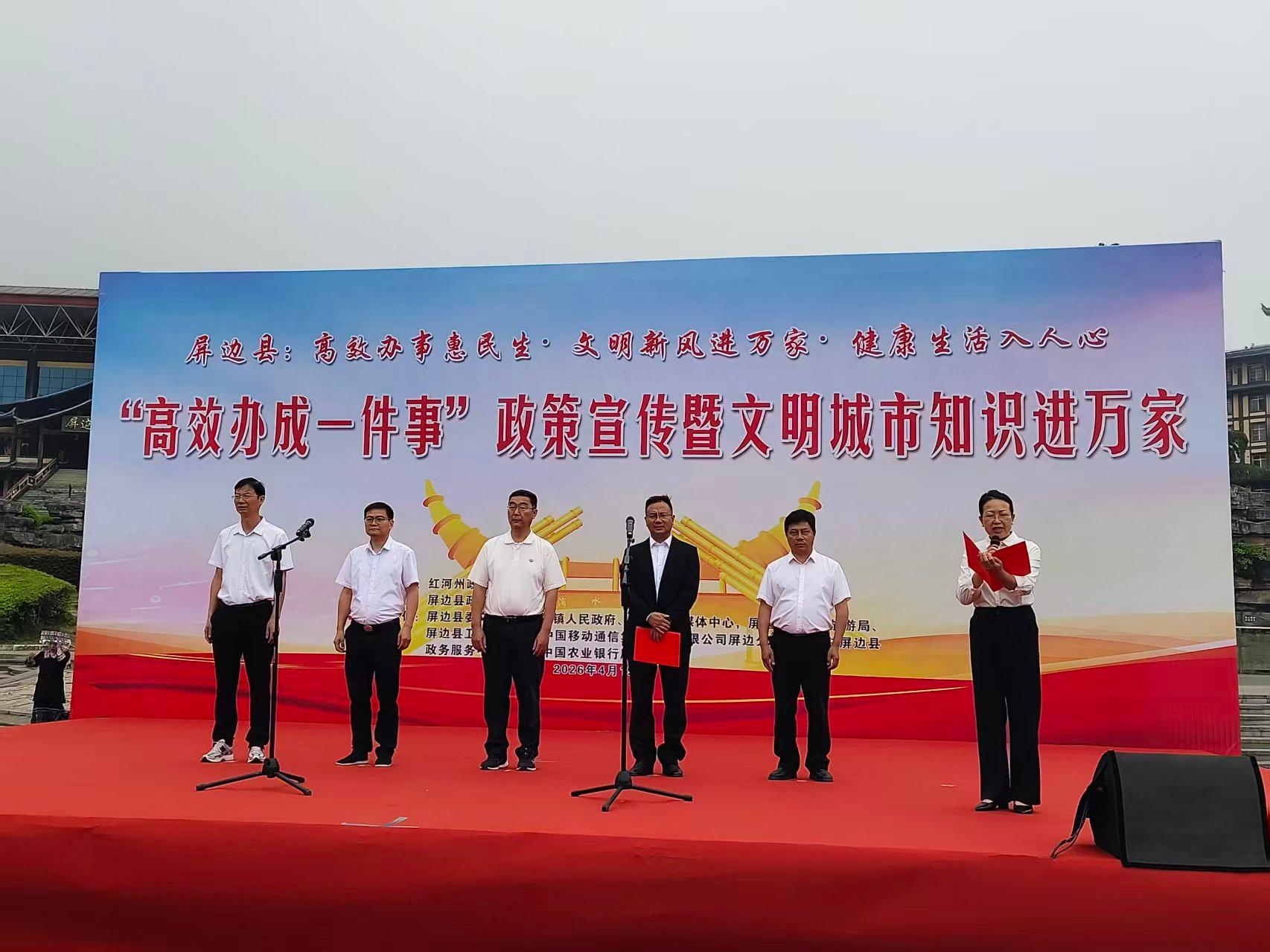 为深入落实国务院“高效办成一件事”改革部署,持续优化政务服务、提升行政效能,同步推进文明城市创建与健康屏边建设,让便民政策、文明理念、健康知识走进千家万户。4月19日,屏边县在大围山民族广场及相关社区开展“高效办事惠民生・文明新风进万家・健康生活入人心”主题宣传活动。