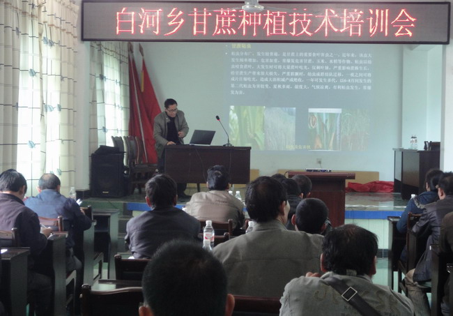 12月12日,白河乡农技站联合省甘蔗科学研究所、蒙自南华克林糖业有限责任公司举办甘蔗种植技术培训会,全乡12个村委会三职干部和近70余农户参加了培训。