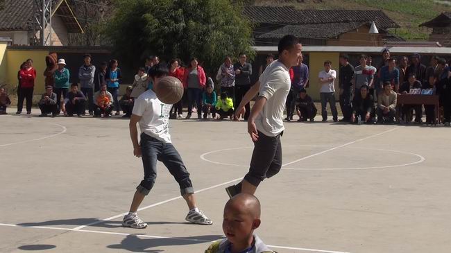 篮球场上,充满青春活力的小伙子们虽然没有统一的队服,平时很少有练球的时间,队员也是临时组队上场,但大家在球场上全都放开手脚,全力以赴,敢抢敢拼,他们时而投篮,时而抢篮板,浑身散发出运动的青春活力,一些队员偶尔还秀一下自己的球艺,比赛热烈而又充满激情。两队实力不相上下,比分也是交替领先,村民们看得津津乐道,不时发出阵阵欢呼声和叫咸声,场上场下,一片欢乐的海洋。经过激烈的角逐,水井边自然村男队以一分险胜,捧走了篮球比赛第一名。