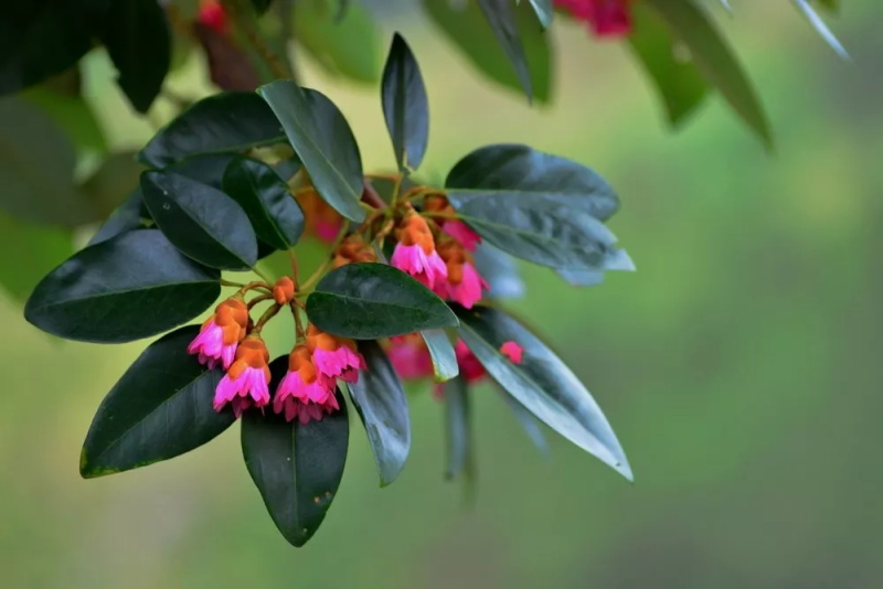 红花木莲,木兰科,木莲属。又名红色木莲,渐危种,常绿乔木。高达30米,花期5、6月,果熟8、9月,树形繁茂优美,花色艳丽芳香,红花木莲耐阴,喜湿润、肥沃的土壤,木质优良,是名贵稀有的观赏树种。分布区属中亚热带,大多零星混杂在常绿阔叶林或常绿落叶阔叶混交林中,生于海拔900-2500米。