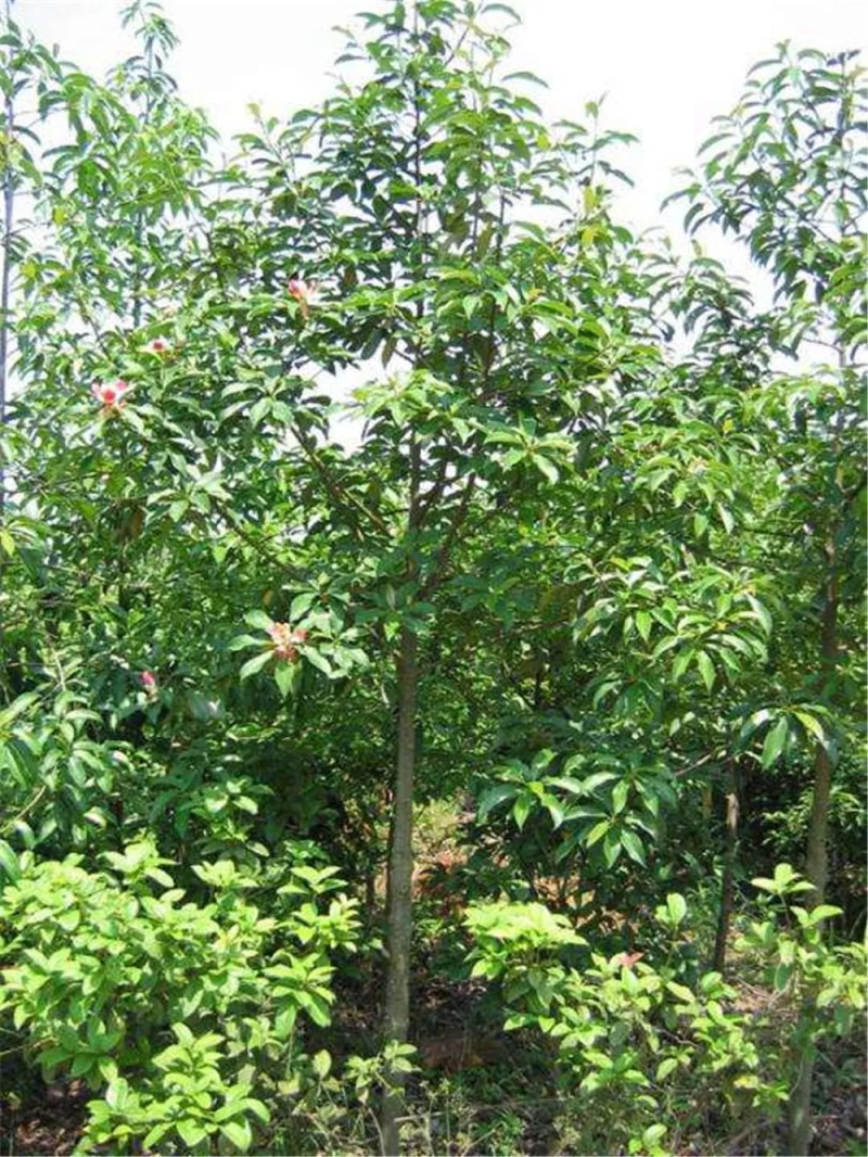红花荷属金缕梅科,常绿乔木,高12米,别称:红苞木。嫩枝颇粗壮,叶厚革质,卵形,光滑无毛,12-4月开花。幼树耐荫,成年后较喜光,要求年均温度19℃-22℃,在土层深厚肥沃的坡地,可长成大径材,生长于海拔400-2800米的混交林中。
