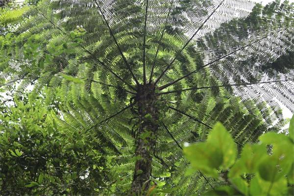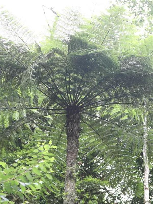 桫椤别名蛇木,属于国家二级保护植物,植株高大,一般株高3-5米,最高近10米。主干不分枝,叶项生,形如巨伞,树形优美,四季常青。她与恐龙同时代,历经沧桑,穿梭亿年,是目前已发现的唯一木本蕨类植物,极其珍贵,被众多国家列为一级保护的濒危植物,享有“蕨类植物之王”之美誉。