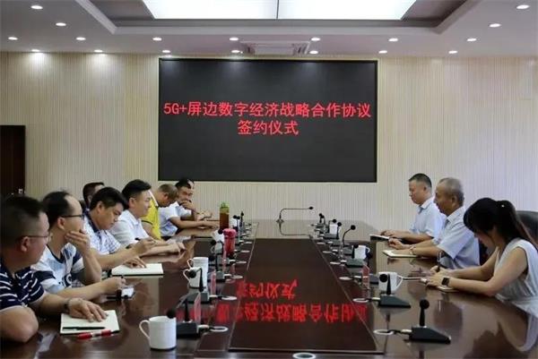 7月23日,屏边县人民政府与中国移动通信集团云南有限公司红河分公司签订“5G+数字经济”战略合作协议。县委副书记、县人民政府县长李雄文,县委常委、县委政法委书记李浩,中国移动通信集团云南有限公司红河分公司总经理金恒昌参加签约仪式。