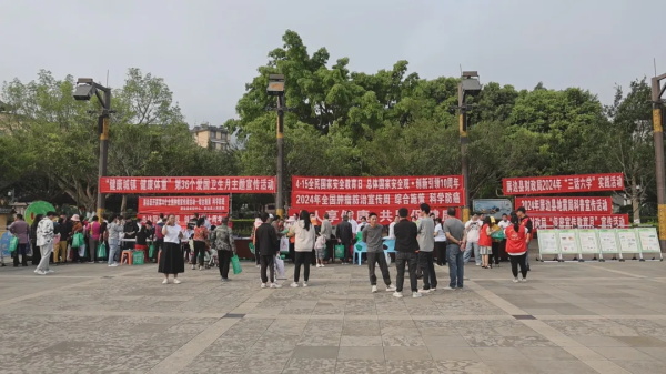 工作人员通过拉横幅、布设展板、发放宣传资料、宣传品、开展义诊服务等方式,向群众宣传科普健康、爱国卫生运动、病媒生物防制等知识,引导群众关爱身心健康,养成合理膳食、适量运动、戒烟限酒的健康生活习惯。