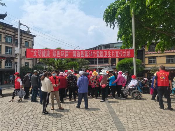 今年4月是第34个爱国卫生月,屏边县积极开展以“文明健康 绿色环保”为主题的宣传活动,广泛动员群众积极参与爱国卫生运动。