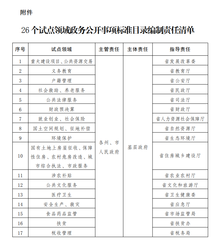 附件:26个试点领域政务公开事项标准目录编制责任清单